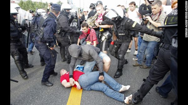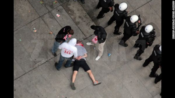 Харин цагдаа нар бичлэг нягтлан үзэж байгаад зодоонд оролцсон, баривчлагдаагүй этгээдүүдийг баривчлах ажээ. Зодооныг болиулахын тулд Польшийн цагдаа нар анхааруулах үүднээс тэнгэр рүү буудсан ч үр дүн гараагүй байна. Улмаар усаар шүршиж, нулимс асгаруулагч хэрэглэсэн байна.