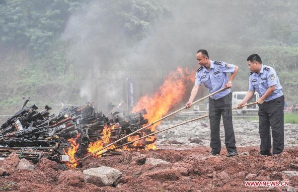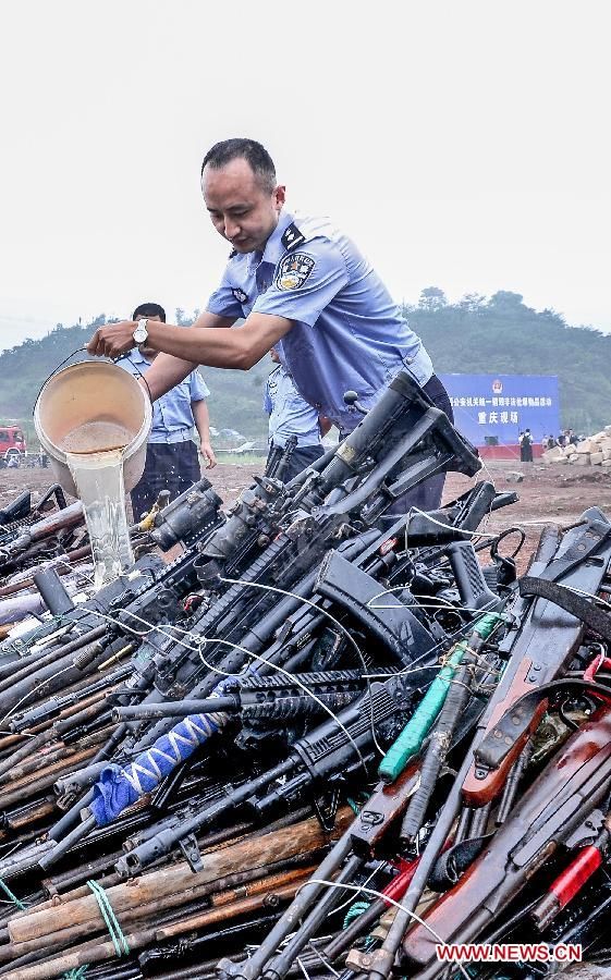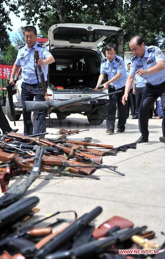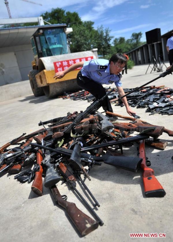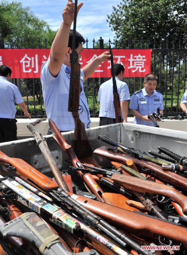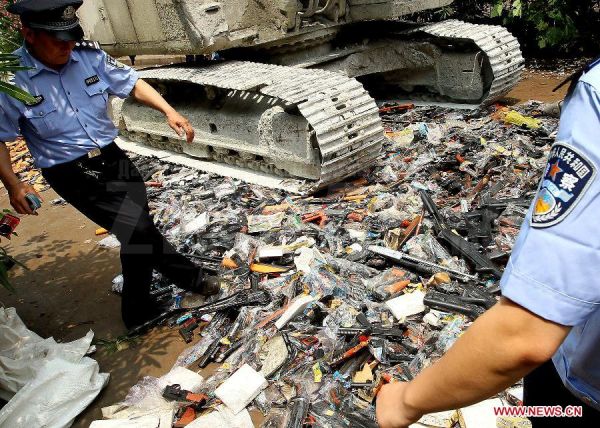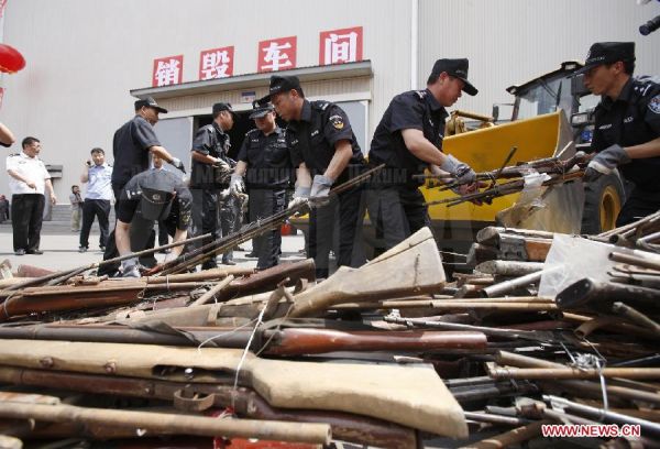 Манай урд хөршид 150хотоос хураагдсан хууль бус галт зэвсэг болон тэсэрч дэлбэрэх эд зүйлийг устгалд оруулж байна. Тодруулбал Хятадын хууль сахиулагчид орон даяар хууль бус буу болон бусдын амь насанд хүрч болзошгүй зэвсэг хураажээ. Үүний үр дүнд 100,000 орчим буу, 250 тонн тэсэрч дэлбэрэх зүйл, сум хурааж өнөөдөр устгалд оруулж байгаа нь энэ юм.