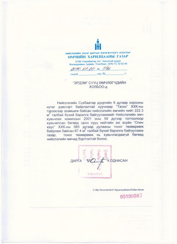 Тус байрны 20 орчим ам метр талбайтай подвальд “Ус, дулаан дамжуулах төв”-ийн тоног төхөөрөмжийг хууль бусаар байрлуулсныг Мэргэжлийн хяналтын газраас шалгалт хийж илрүүлэн арга хэмжээ авч байжээ. Тухайлбал, даралт баригч тоноглолгүй, чийгшилт, уур солилцох салхивч хийгдээгүй. Мөн барилгад суулт үүсгэсэн дулааны узельд үүссэн усны уур, чийгшилт хүйтний улиралд барилгын 1-2 дугаар давхарт цан хүүрэг үүсгэж байгааг тогтоожээ.