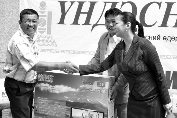 Тус сонин 2012 оны есдүгээр сарын 8-ны өдөр нийт захиалагчдынхаа дунд 25 автомашины сугалаа явуулахаар амлаад байгаа. Тэгвэл үүнээс яг нэг улирлын өмнө 25 ширхэг, 32 инчийн LСD зурагтыг 25 автомашины ИХ СУНГАА болгон азтай захиалагчдадаа бэлэглэлээ. Сугалааны тохирол энэ сарын 17-нд ТВ-5 телевизээр явагдаж, 21 аймаг тус бүрээс нэг, Улаанбаатар хотоос дөрвөн азтан тодорсон бол тэд өчигдөр шагналаа гардаж авлаа. Эх орны дөрвөн зүг, найман зовхист ажиллаж амьдарч буй захиалагчдын маань дундаас тодорсон энэхүү азтанууд шагналын зурагтаа гардан авч дурсгалын зургаа татуулцгаасан юм.