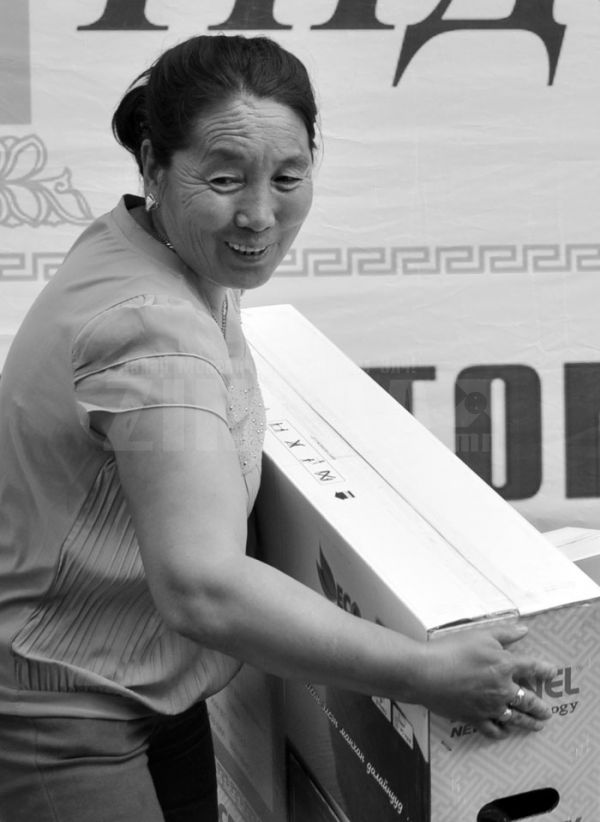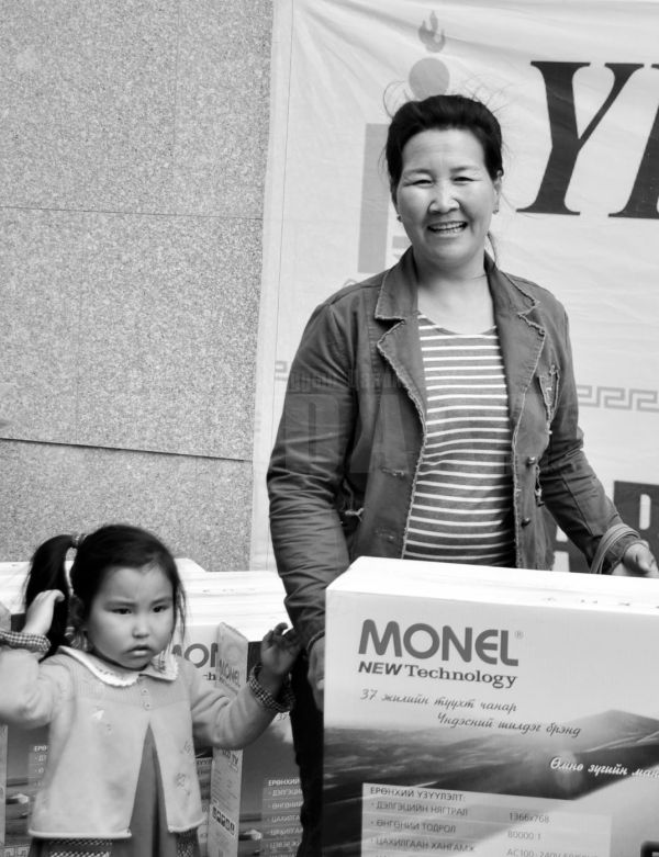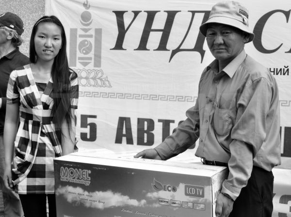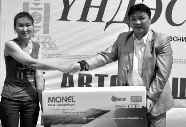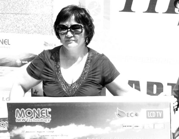 Тэгээд л азтан болсноо мэдээд том хүүгээ дагуулаад ирлээ. Миний хүүхдүүд их баяртай байгаа. Шинэ телевизээ үзэхсэн гэж яарч байгаа гэсэн шүү, хүү минь. Ингээд танай сонины хамт олонд өөдлөн дэвжихийн ерөөл дэвшүүлье. Нээрээ нэг юм хэлэхээ мартаж. Нутгийнхан мааань одоо хүртэл баярын мэнд хүргэж байна.