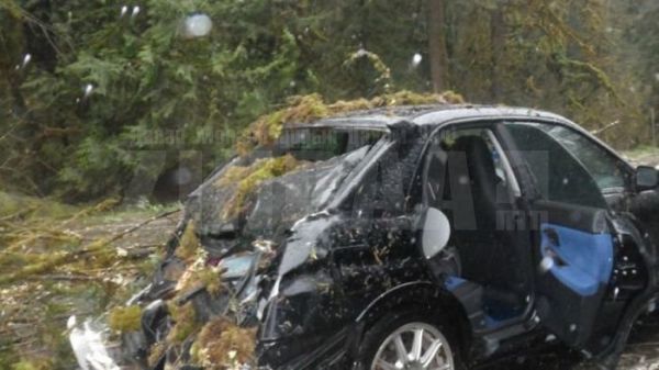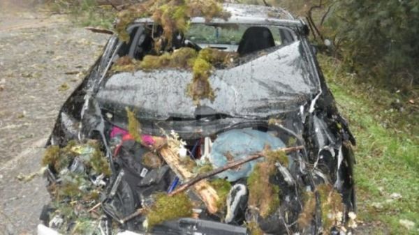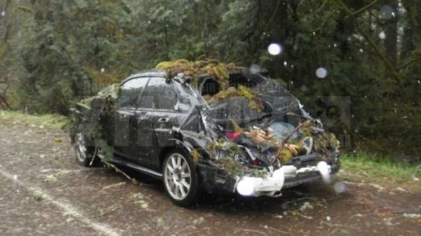 Subaru машины бат бөх кузов эзнээ үхлээс аварчээ. Энэ бол Subaru WRX STi төмөр хүлэг. Спорт загварын энэ машин дээрээс аварга мод унажээ. Харин аз болоход эзэн нь амьд гарчээ.