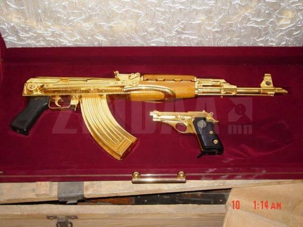 Түүний цэвэр мөнгө болон алтаар хийлгэсэн автомат, гар буу, гранатометууд...
