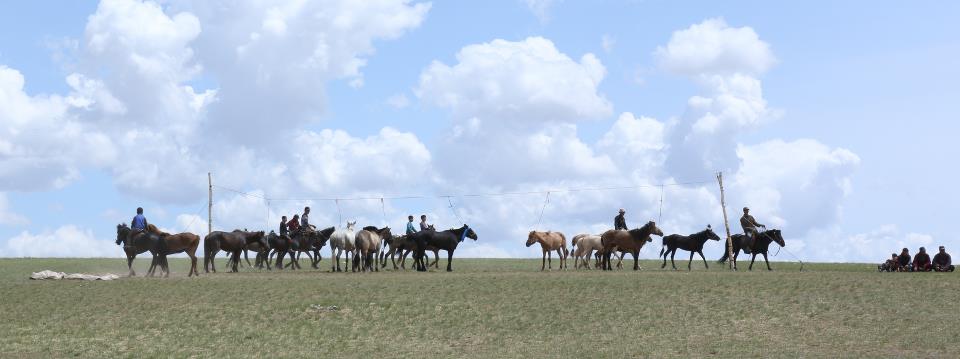 Дэнзэн өвөө бид хоёрыг хүмүүс бүчин авч баяр хүргээд би гэдэг лут амьтан хэзээний архаг уяач адил тосч ирсэн хүмүүстэй гар бариад, хөөргө зөрүүлэн алхана. Өвгөн уяачийн магнайн үрчлээ тэнийсэн ч юм шиг өдрийн наранд гялалзан харагдах нь үнэхээр гайхалтай сайхан. Асарын зүүн талаар ижилхэндүү морьтой халх боржин эмээлтэй хоёр хүн биднийг чиглээд ирж айсуй. Төдхөн дэргэд ирээд Амар байна уу? хэмээн өвөөтэй мэндлээд хөөрөг зөрүүлэн тамхилаад, гаансаа түрийнээсээ сугалж тамхиа нэрнэ. Ярианых нь аясыг сонсохнээ. Яггүй хурдан хүлэг байна. Яасан ч сайхан давхилттай юм гээд аар саарыг хуучилна.