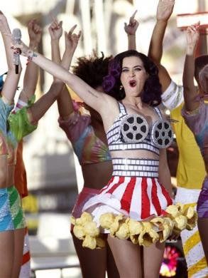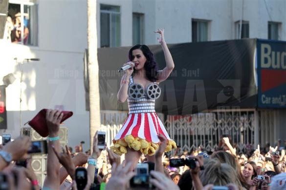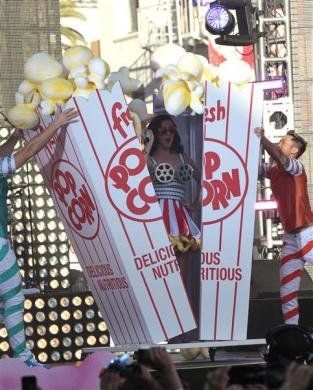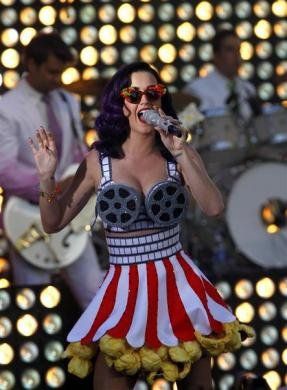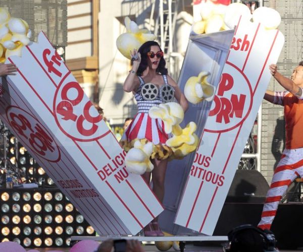 Кети Перри өөрийн тоглосон “Part of me” 3D киноны нээлтийн шоун дээрээ попкорн, кино хальс чихсэн мэт даашинз өмссөн байв.