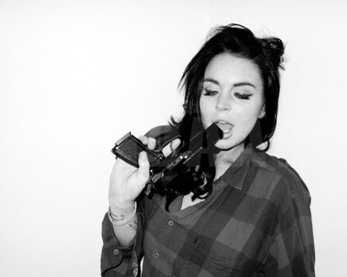 Энэ нь түүний ээлжит цуврал гэрэл зураг аж. Түүнийг өмнө нь нүцгэн, согтуу, мансуурсан байдлаар бид харж байсан. Харин энэ удаад буутай... Гэрэл зурагчин нь Терри РИЧАРДС. Зургийн нэр “Муу охин”.