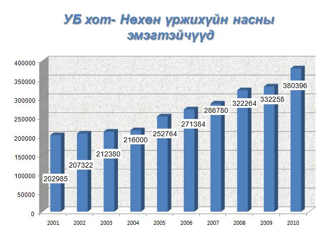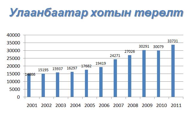 Улаанбаатар хот 4,7 мянган км2 хавтгай дөрвөлжин нутаг дэвсгэртэй бөгөөд 391122 өрхтэй. Тэдгээрээс 70,3 хувь нь гэр хороололд, 29,7 хувь нь орон сууцанд амьдардаг. Нийт өрхийн 18,35 хувь нь амьжиргааны баталгаажих түвшнээс доогуур, 24,7 хувь нь ядуу, 13,95 хувь нь алслагдсан өрх байна. 2010 онд гэхэд 23450 өрх шилжин ирж суурьшсан. Хүн амын ядуурлын түвшин 26 хувь байна.