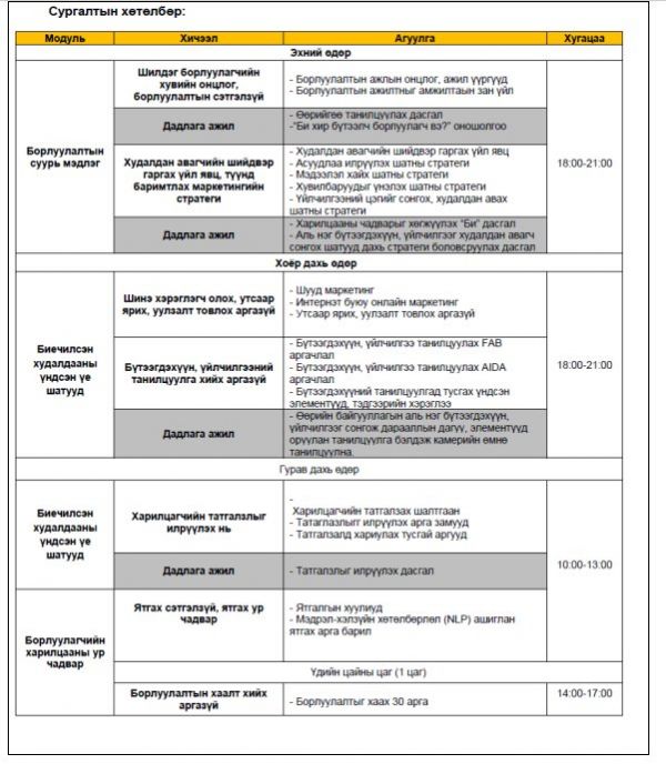 Энэ асуудлыг хэрхэн шийдэх вэ? Сайн борлуулагчийг ажиллуулах, эс бол одоо байгаа борлуулагчаа сайтар бэлтгэх. Борлуулагчийг бэлтгэх байгууллагын хувьд худалдах, борлуулах сургалтаар сүүлийн гурван жил тасралтгүй сургалт явуулж байгаа туршлагатай байгууллага бол Монголын Лектор төв. Гадны дэвшилтэт менежментийг цаг ямагт нэвтрүүлж, Монгол хөрсөнд буулгаж, сургалтаараа дамжуулан Монголын зах зээлд алхам алхмаар үр өгөөжөө өгсөөр байна. Харин 8-р сарын 23-25-ны хооронд “Мастер борлуулагч” сургалт явагдах юм байна. Хэрэв та шаардлагатай үед өөрийгөө ч худалдах чадвартай болохыг хүсвэл Монголын лектор төвд хандаарай. 70111839 гэсэн утсаар холбогдож болох юм байна.