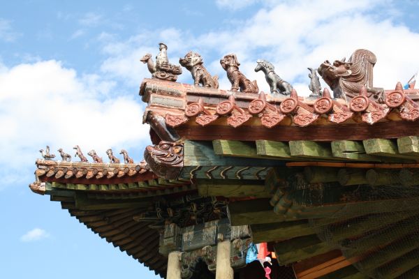 Манжийн эзэнт гүрэн Монгол гүрний үеийн төрт ёс, цэрэг, техник, иргэний бодлогоос уламжлан авсан байдаг бөгөөд тэдгээрийн нэгэн болох барилга урлахуйн онолыг хот суурины цогцолборт өргөн хэрэглэж байсны жишээг Амарбаясгалант хийдийн дурсгалаас үзэж болно. Цогцолборын гол хэсгүүдээс дурдвал: