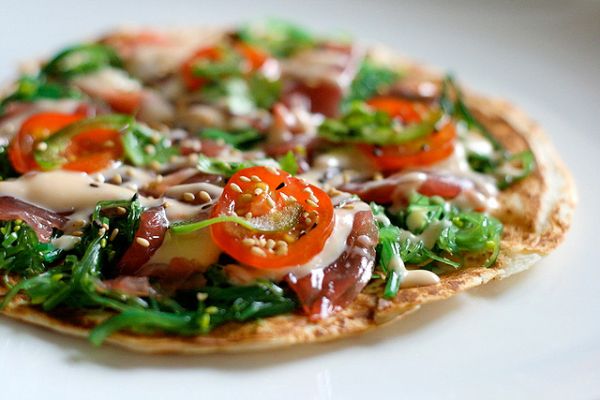 2. Хөөсөн гурилыг нухаж хэвэндээ хэвлээд дээр нь эхлээд соусаа дараа нь бяслаг, туна болон урт нарийхан хэрчсэн чинжүүг жигд тарааж тавина. Нэг халбага Heinz кетчупыг усаар шингэлээд гурилны илүү гарсан ирмэг дээгүүр түрхэж өгнө. (Пиццаны ирмэг шаргал өнгөтэй болно.)
