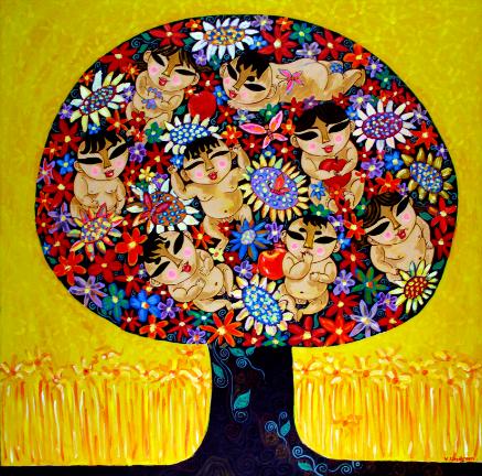 -Олон жилийн дараа отгон хүүгээ төрүүлж үртэй болохын жаргалыг мэдэрсэн. Урлагийн хүнд байгаа орчин их чухал нөлөөтэй байдаг. Тиймээс байгаа орчин, мэдэрч байгаа бүх зүйлсээсээ сэдэвлэн “Үр минь” гэдэг зургийг зурсан. Энэхүү зурган дээрээ хүүгийнхээ хөдөлгөөнүүдийг дүрсэлсэн юм. Харин мод бол бүх зүйлийг бат бөх болгодог учраас модон дээр ургаж байгаа хүүхэд зурсан.