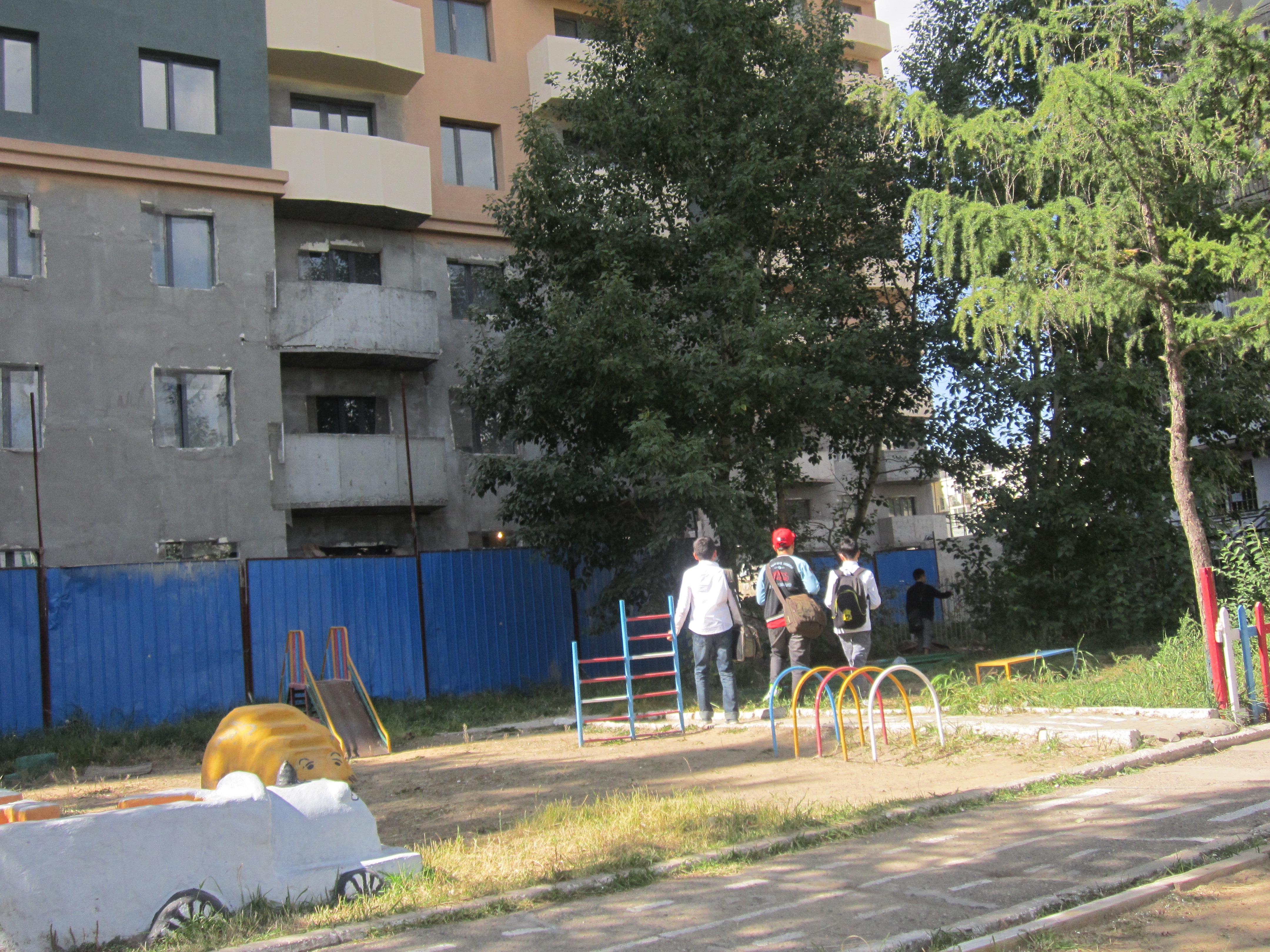 Түүнчлэн, цэцэрлэгийн хашаанд хэдэн хором зогсоход үүгээр ЕБС-ийн сурагчид яг энэ цэцэрлэгийн хашаагаар дамжин барилгын хажуугаар явж харагдана. Хятад ажилчид үе үе гарч ирэн тамхи татангаа чанга чанга дуугаар хоорондоо ярина. Цэцэрлэгийн эрхлэгчийн хэлж буйгаар хятад ажилчид цэцэрлэгийн багш, ажилчдыг явахаар шүгэлдэж, орилдог гэлээ.