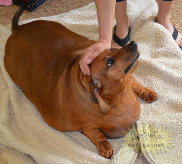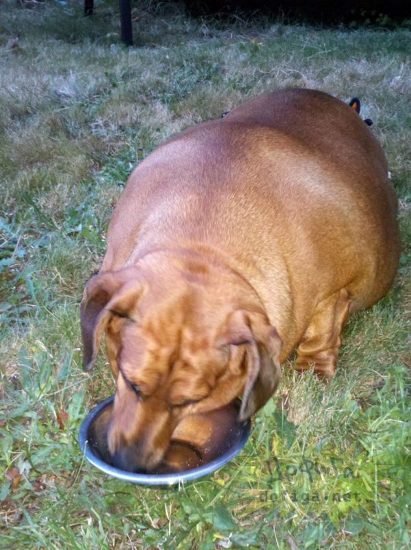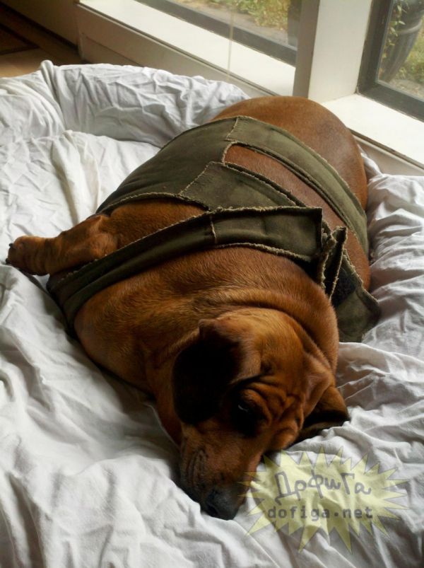 Энэ нохойг Оби гэдэг. Таван настай бөгөөд дэлхийн хамгийн бүдүүн нохойгоор тодроод байгаа. 35 кг жинтэй түүнийг 10 кг турахгүй бол урт наслахгүй гэдгийг эмч нар хэлдэг байна. Алхах дургүй Оби эрхэлж хэвтэнгээ хоол идэх дуртай ажээ.