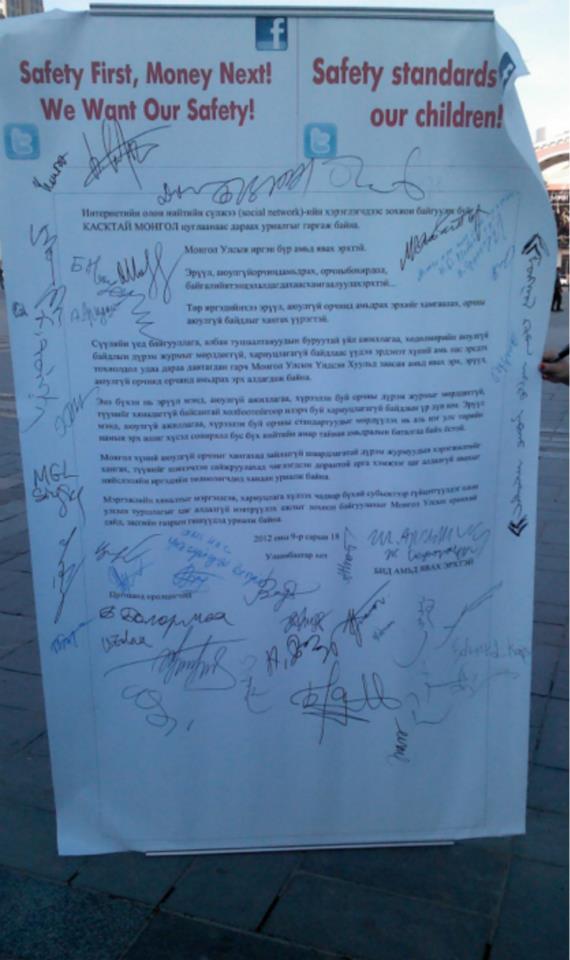 Өнөөдөр 18 цагаас Сүхбаатарын талбайд “Касктай Монгол” тайван жагсаалыг Твиттер facebook хэрэглэгчдийн санаачлагаар “Бид амьд явах эрхтэй” уриан дор зохион байгууллаа.