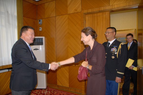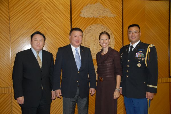 Өнөөдөр УИХ, Засгийн Газрын гишүүн, Батлан хамгаалахын сайд Д.Бат-Эрдэнэ АНУ-аас Монгол улсад суугаа онц бөгөөд бүрэн эрхт элчин сайдаар томилогдож, саяхан итгэмжлэх жуух бичгээ барьсан хатагтай Пайпер Энн Уинд Кэмбэллийг төрийн ордонд хүлээн авч уулзлаа. Уулзалтын эхэнд талууд дипломат харилцаа тогтоосны 25 жилийн ой энэ онд тохиож байгааг тодотгоод өнөөг хүртэл хоёр орны хамтын ажиллагаа улс төр, эдийн засаг, нийгмийн бүхий л салбарт түргэн хурдацтай хөгжиж ирсэн он жилүүд байснаа онцоллоо. Мөн Монгол Улсын Ерөнхийлөгч Ц.Элбэгдорж, АНУ-ын Ерөнхийлөгч Барак Обама нар хоёр орны харилцааг хамтын үнэт зүйлс, стратегийн нийтлэг эрх ашигт тулгуурласан иж бүрэн түншлэлийн үзэл санааны дагуу өргөжүүлэн хөгжүүлэхээ 2011 онд дахин нотолсон нь хоёр талын харилцаа, хамтын ажиллагааны хэтийн төлөвийг тодорхойлсон үйл явдал болсон гэж үзэж байгаагаа энэ үеэр Монгол улсын Батлан хамгаалахын сайд Д.Бат-Эрдэнэ тодотголоо. Цаашлаад хоёр талын батлан хамгаалах салбарын харилцаа, хамтын ажиллагаа амжилттай хөгжиж байгаад сэтгэл хангалуун байгаагаа илэрхийлээд, энэ харилцаа нь хоёр улсын нийтлэг эрх ашиг болох ардчилал, эрх чөлөө, хүний эрхийг дэлхий дахинд хамгаалах, хоёр орны ард түмний найрсаг харилцааг гүнзгийрүүлэх, бүс нутагт болон дэлхий дахинд цэргийн итгэлцлийг бэхжүүлэх, энх тайван, тогтвортой байдлыг сахин хамгаалахад чухал үүрэг гүйцэтгэх болсныг энэ үеэр хоёр талууд тэмдэглэн хэлсэн юм. Уулзалтын төгсгөлд Батлан хамгаалахын сайд Д.Бат-Эрдэнэ хоёр талын харилцааны залгамж чанарыг хангаж, хамтын ажиллагааны үндсэн чиглэлүүдээр хийгдэж, төлөвлөгдөж буй ажлуудыг үргэлжлүүлэх, зарим талаар цаашид хөгжүүлэн баяжуулах талаар анхаарч ажиллах болно гэдгээ илэрхийллээ.