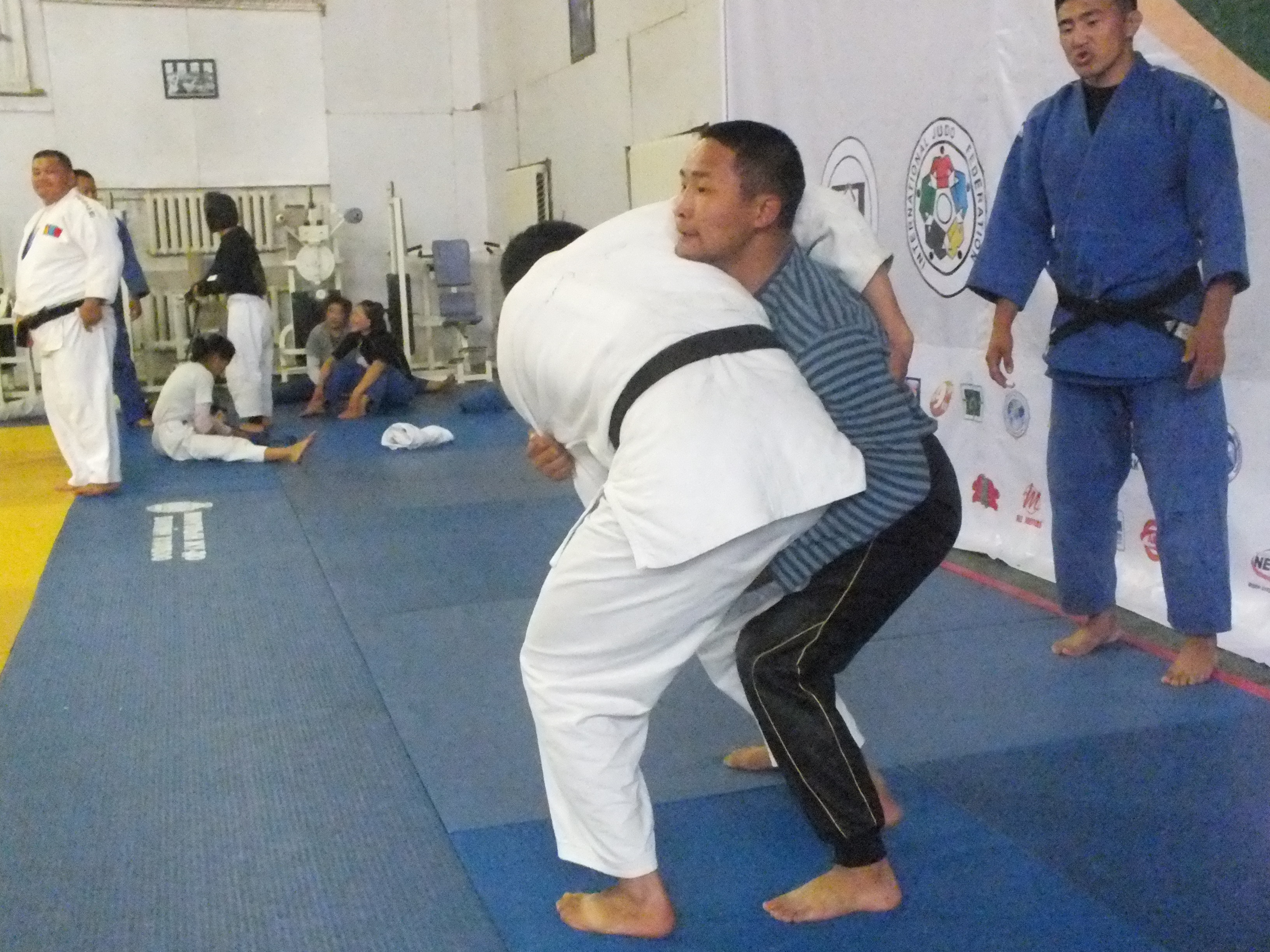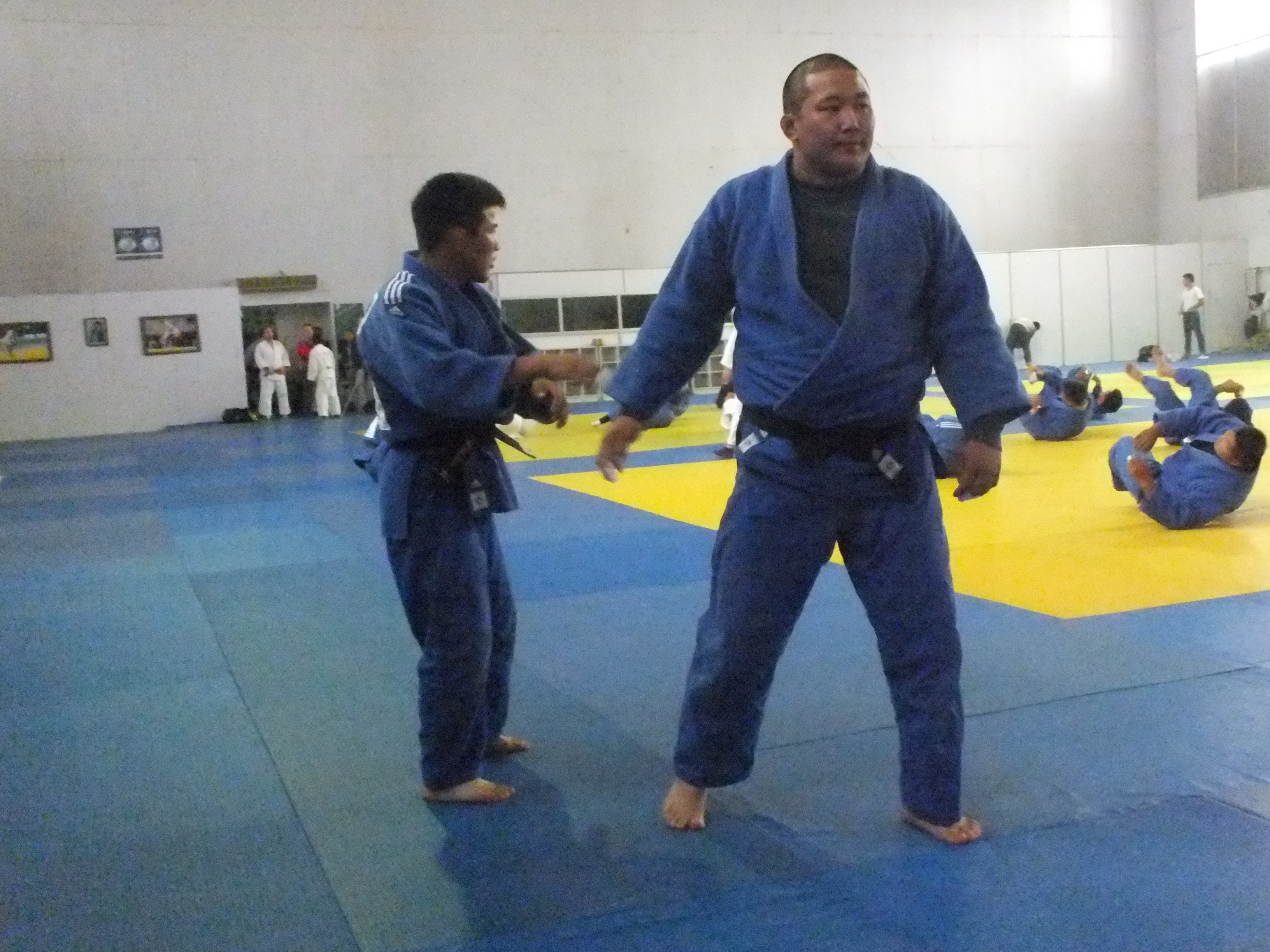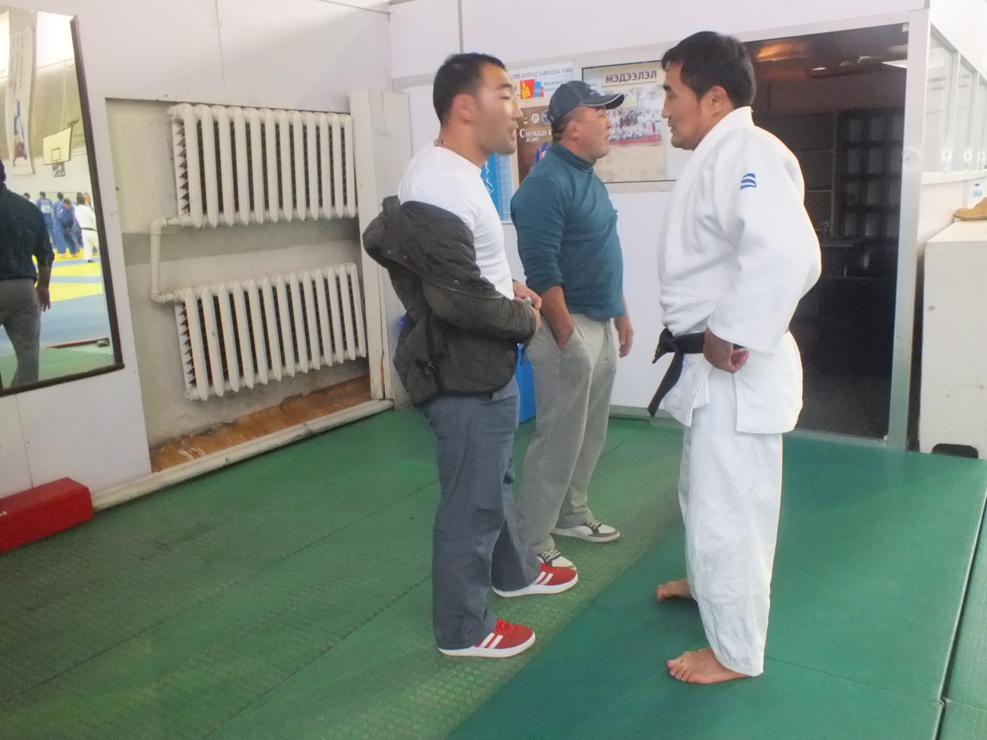 Спортын төв ордон байнга олны хөлд дарагдаастай. Үүнд ч спортынхон таатай байдаг. Мэргэжил нэгтнүүд нэмэгдэж байгаа болохоор арга ч үгүй. Саяхан жүдо бөхийн үндэсний шигшээ багийн хэсэг тамирчин зааландаа бэлтгэл хийж байв. Хаалгаар нь дөнгөж ороход “Лондон-2012” зуны олимпийн хүрэл медальт, гавьяат тамирчин С.Ням-Очир, гавьяат тамирчин, жүдо бөхийн шигшээ багийн дасгалжуулагч Д.Баттулгатай зогсч байсан бол хажууханд нь тус холбооны нарийн бичиг М.Бөхбат өөрийн холбоонд нь зөвлөх дасгалжуулагчаар ирээд байгаа Германы иргэнтэй байв.