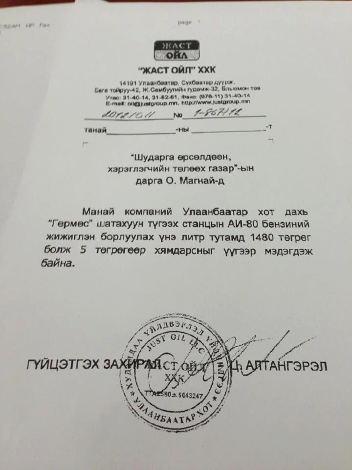 ШӨХТГ-аас шатахуун импортлогчдод хандан зохиомлоор өсгөсөн шатахууны үнийг бууруулах талаар шаардлага хүргүүлсний үр дүнд зарим аж ахуйн нэгж, компаниуд бензин шатахууныхаа үнийг таван төгрөгөөр бууруулжээ. Өнөөдрийн байдлаар "Жаст ойл" ХХК нь шатахууныхаа үнийг бусад компаниудаас түрүүлэн буулгаж байгаа ба энэ тухайгаа ШӨХТГ-т бичгээр хүргэжээ. Хэдийгээр үнээ бууруулж байгаа нь сайшаалтай боловч энэ нь төдийлөн сайн хямдарсангүй гэж иргэд үзэж байна.