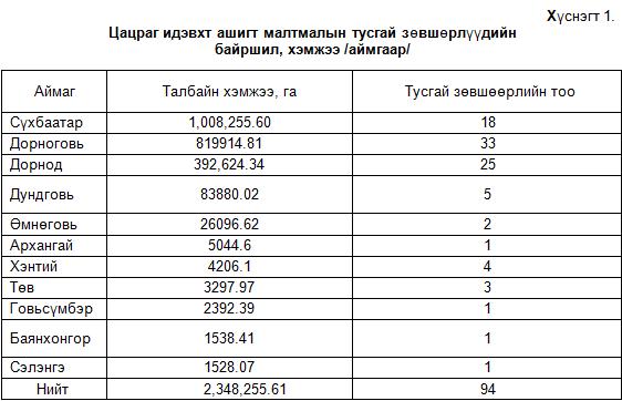 - Нийт тусгай зөвшөөрлийн талбай- 2,348,255.61 га /23,482.55 км2/