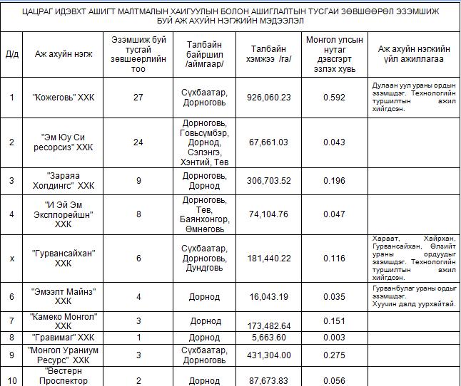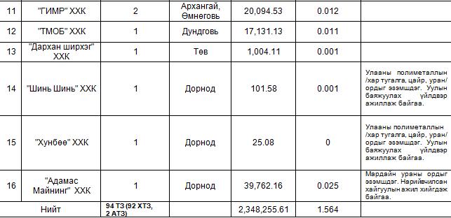 - Хайгуулын тусгай зөвшөөрлийн талбай-2,348,128.95 га /23,481.29 км2/