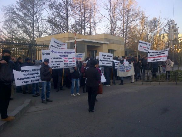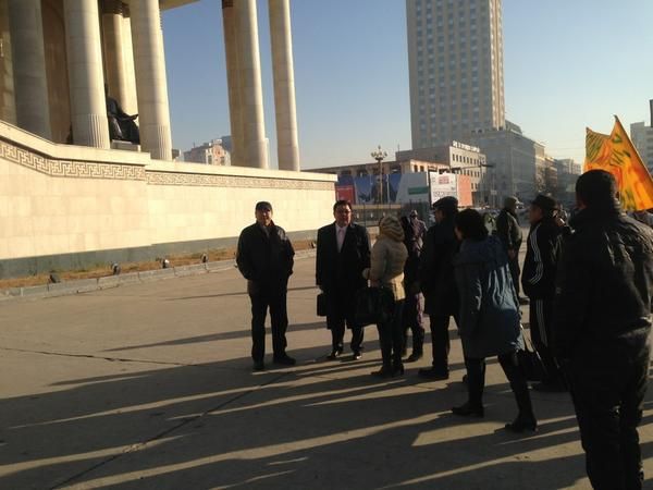 МАН-ын гишүүд Төрийн ордны зүүн хаалган дээр жагсаж хөл хорио тогтоожээ