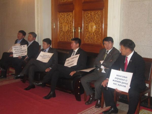 МАН-ын гишүүдийн суулт өнөөдөр өглөө найман цагт эхэллээ. Тэд өнөөдөр чуулганыг хуралдуулахгүй хэмээн чуулганы танхим руу ордог гурван хаалгыг хаан сууж байна. МАН-ын гишүүдийн суулт өнөөдөр ажлын цаг дуустал үргэлжлэх ажээ.