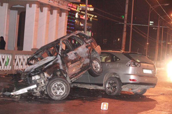 Өчигдөр 22 цаг 50 минутын орчимд Энхтайваны гүүрэн дээр осол гарч нэг хүн нас барсан байна. Тодруулбал 7070 УБП улсын дугаартай wizard 9000 УБЧ улсын дугаартай Lexus-RX400 маркын машинууд хоорондоо мөргөлдсөн юм. Ослоос хэдхэн минутын дараа Wizard машин шатаж, сууж явсан хоёр зорчигч нь гарсан байна. Харин жолооч нь жолооны хүрд, суудал хоёрынхоо хооронд шахагдан гарч чадахгүй байсаар нас баржээ.