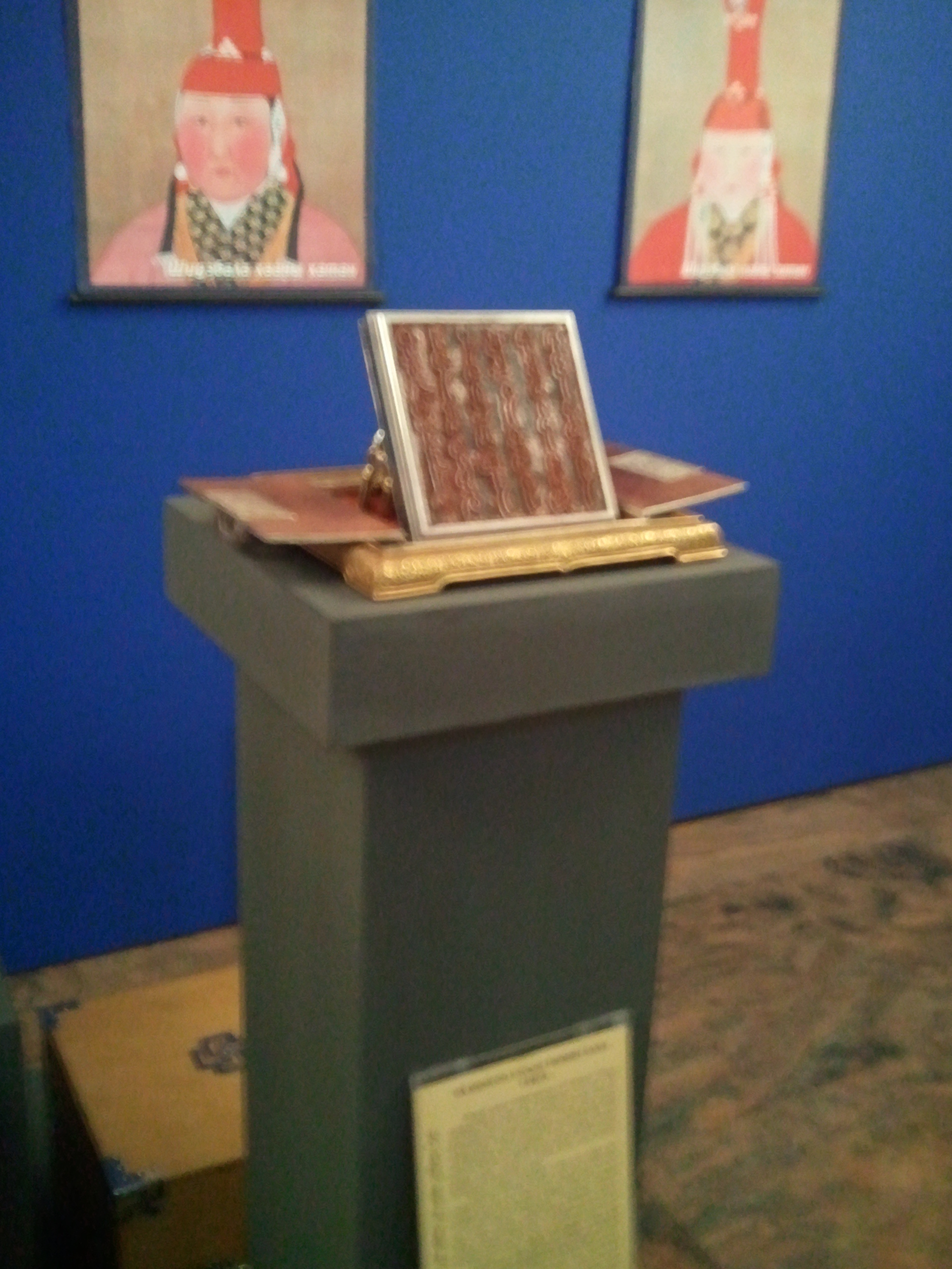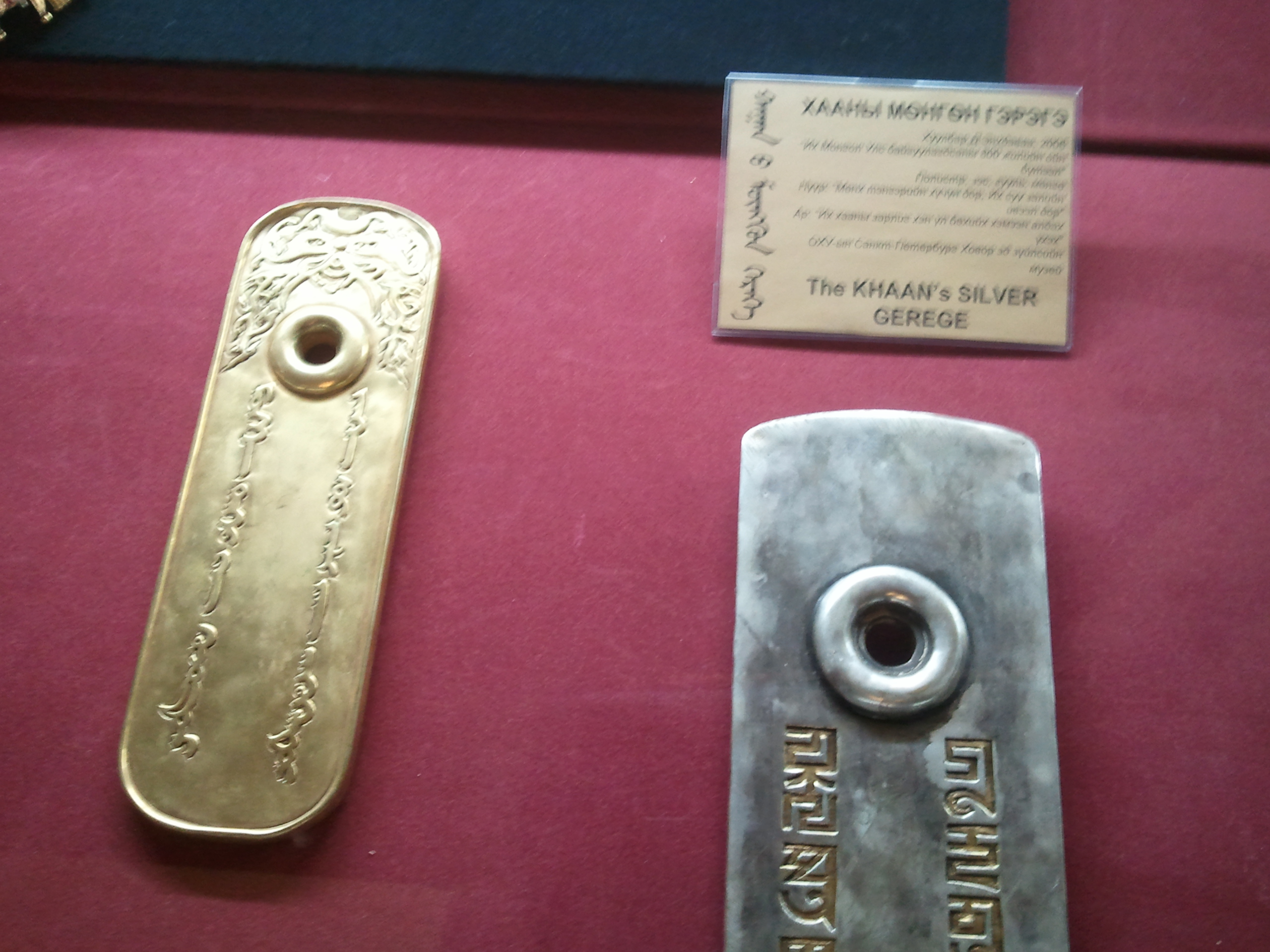 Эзэн Чингис хааны мэндэлсний 850 жилийн ойд зориулан дэлгэсэн энэхүү үзэсгэлэнд Их хааны алтан ураг буюу түүний язгуур угсаа, Монголын нууц товчоо, Чингис хаантай андгай тавин нөхөрлөсөн анд, хаан ширээний төлөө өстөн болж өрсөлдсөн Жамухын бүс, Монгол дайчдын зэр зэвсэг, Их хааны мөнгөн гэрэгэ, алтан хундага, алтан зоос зэрэг олон үзмэр дэлгэжээ.