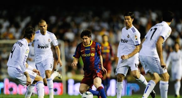 Харин дасгалжуулагч Жозе Моуриньогийн хувьд дөрвөн улсын цомын тэмцээнд түрүүлсэн гайхалтай амжилт тогтоов. Моуриньо энэ тоглолтын үндсэн бүрэлдэхүүнд цэвэр довтлогчдоос нэгийг ч гаргаагүй юм. Довтлогчийн байрлалд ганцхан Криштиано Роналдог гаргаж, Игуаин, Бензема, Адебайор нарыг суулгасан нь нэг талдаа зоригтой алхам мэт хэрнээ нөгөө талдаа хаширласан мэт харагдаж байсан. Мөн “Реал”-ын тоглогчид Иньеста, Чави нарт талбайн гүнээс довтолгооныг эхлүүлж, оновчтой дамжуулалт өгөх боломж олгохгүйн тулд өрсөлдөгчийнхөө талбайд прессинг тавьж тоглосон юм. Гэхдээ Пепе, Хедира нар өрсөлдөгчийнхөө талбайд яг л довтлогч шиг нэвтрэн прессинг тавьсан нь ихэд содон харагдаж байлаа. Тоглолтын эхний үед “Барселона” бүх багийг аагладаг ганц хүрэлтээр богино дамжуулалт өгч тоглодог үндсэн барилаа олж чадахгүй байсаар өндөрлөсөн. Үргэлж довтолгоонд нээгдэж өгдөг Мессиг ч эхний үед тун сайн “барьсан” тул “Барселона”-гийн довтолгоог бүрэн түгжиж чадсан гэж хэлж болно. Харин “Реал” сөрөг довтолгоонд тун эвгүй орж, Пепегийн мөргөсөн бөмбөг шонд ойсон юм.