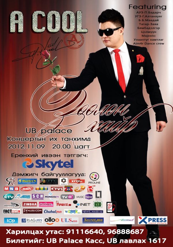 Өнөөдөр газар дэлхий цагаан нөмрөгөө өмсөж, шинэхэн цас зөөлнөөр бударсан тийм л сайхан өглөөтэй золголоо. Сайхан гэгээтэй дурсамжуудаар бодол сэтгэлээ хөглөж, хайртай хүнтэйгээ хаашаа ч юм алхаад л баймаар... Ай даа юутай сайхан өглөө вэ. Бас би оройг хүлээнэ. Энэ үдэш олон сайхан хайрын аязууд эгшиглэж, эгэлгүй агуу хайрыг хамтдаа магтан дуулж, уяран хайлах үдэш байх болно. Өнөөдөр оройн 20 цагаас дуучин A Cool-ын “Зөөлөн хайр” анхны бие даасан тоглолт нь UB паласын концертын их танхимд эгшиглэх гэж байна. Энэхүү тоглолтыг надтай адилхан хүсэн хүлээсэн хүмүүс ч олон байгаа байх. Ийм л сайхан үдэш хайрттайгаа болон дотны хүмүүстэйгээ зөөлөн хайрын эгшгэнд бүүвэйлэгдэж, хайр хэмээх үгээр илэрхийлж боломгүй агуу зүйлийг хамтдаа магтан дуулж энэ үдшийг мартагдахааргүй өнгөрүүлэхийг хүссэн хэн боловч хүрэлцэн ирээрэй. Дуучин A Cool-ын дуунууд миний чихэнд бус сэтгэл зүрхэнд эгшиглэдэг болохоор би түүний дуунуудыг сонсох дуртай. Өнөөдрийн зөөлөн цас хаялсан үдэш "Зөөлөн хайр" тоглолт олон хүний сэтгэлийг хөдөлгөсөн сайхан тоглолт болно гэдэгт эргэлзэхгүй байна.